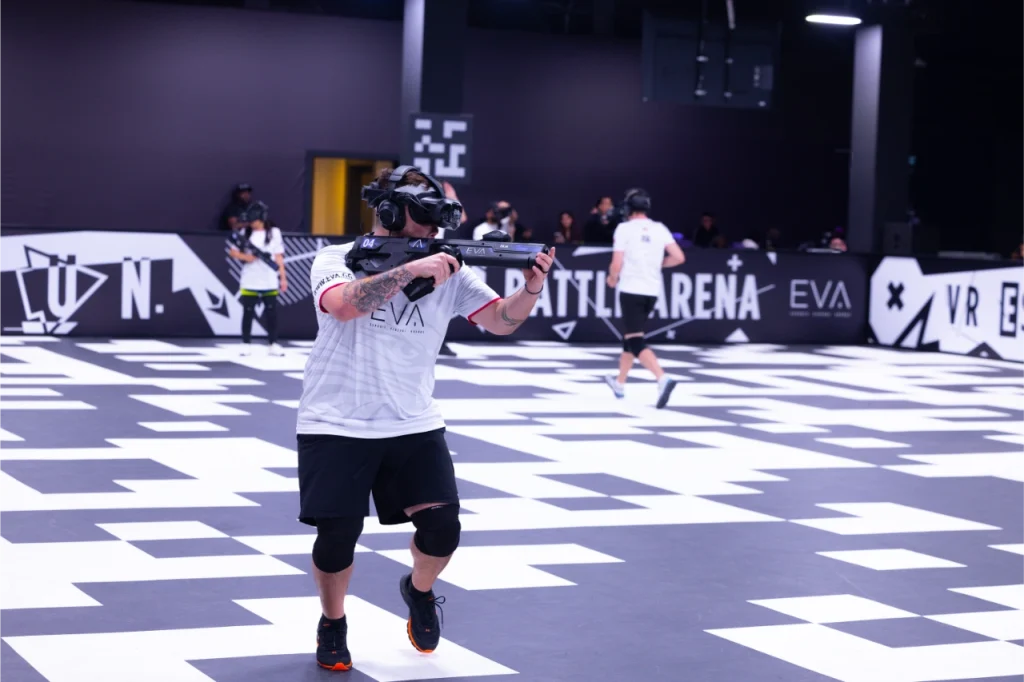 Meciurile din ligă se desfășoară în modul de joc Domination din After-H: Battle Arena, shooterul tactic dezvoltat special pentru competiții VR în cadrul ecosistemului EVA. În acest mod de joc, controlul teritoriului, comunicarea și coordonarea echipei sunt esențiale: jucătorii se deplasează fizic în arenă, capturează și apără puncte cheie și își ajustează strategiile în timp real, într-o experiență care îmbină intensitatea sportului cu adrenalina gamingului competitiv. Arena EVA din București găzduiește două spații de joc de câte 500 de metri pătrați fiecare, unde mișcarea din viața reală este transpusă 1 la 1 în mediul virtual, fără cabluri sau limitări.